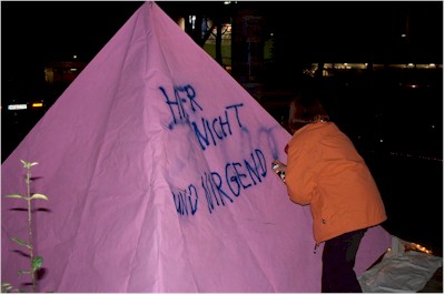 Am 20.11.2007 übergab eine Delegation aus der FREIen HEIDe dem Arbeitskreis Frieden Nordhorn eine rosa Pyramide, die schon bei der Besiedelung des Bombodroms am 1. Juni zum Einsatz gekommen war. Bei einer Veranstaltung unter dem Titel "Jede kann Treffen - Frauen fordern die Abschaffung aller Bombenabwurfplätze" wurde die Pyramide aufgebaut und beschriftet, am nächsten Tag stand sie zum Fototermin vor der Einfahrt zur Nordhorn Range.